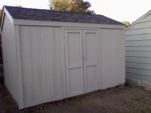 My sister, NJ, is getting ready to start a new adventure in another state. She is heading north and will be going back to school. Her furniture, however, is only going halfway and will be stored in a brand new – freshly painted shed in my parents’ backyard.