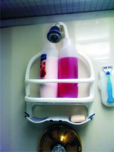 You probably can’t notice the problem in this picture because it looks fine. However, the only hooks for my loofa are in front – right above the shower handle. I know, it looks like there are a couple of hooks on the side. But they are just little knobs and the rope handle on my loofa is thicker. So, I can hang my loofa precariously on the knob but won’t be surprised if it’s on the floor the next day. This is something I really should have noticed at the store. I think the suction cups on the back blinded me to the impracticality of the front.