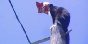 All I have to say is this cat is an overachiever dork. It’s bad enough to get stuck on top of a pole OR to get one’s head stuck in a Doritos bag but to do both? That takes talent. It begs the question (one of many) which came first, the pole or the bag? And it creates a new adage: can’t see the pole with a Dorito bag stuck on your head.