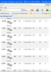 Perhaps you haven’t heard, the west is currently burning up. Literally. Fires in Colorado, Utah, and Wyoming are causing devastation and destruction among the human inhabitants. So much so, last week when I checked the local forecast, I saw something I’ve never seen before.