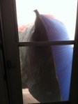 I came up the stairs and saw this out the back door. “What is that?” I asked.