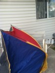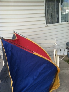 I didn’t even know where to begin to find the owner. I crawled inside to see if there were any clues. No clues but there was a small package of Oreos in the pocket. “That’s not helpful at all.” I placed the cookies back in the pocket. I walked around to the front of the house to see if there were any forlorn children looking like they were missing a tent. There were none. I went back to the backyard and saw some children jumping on the trampoline at the house across the alley. If the tent came from their yard it would have had to been airborne. How awesome would that be! A flying tent. I hollered over the fences and asked the children if they were missing a tent. Without missing a jump, they answered negative. They thought I was crazy. Shucks! No Wizard of Oz flying tents here.