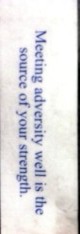 So no, Fortune Cookie Company, I am going to have to respectfully disagree with you on this. I have not learned to meet adversity well, yet, so it falls more into the weakness category. But thanks for trying to look on the bright side!