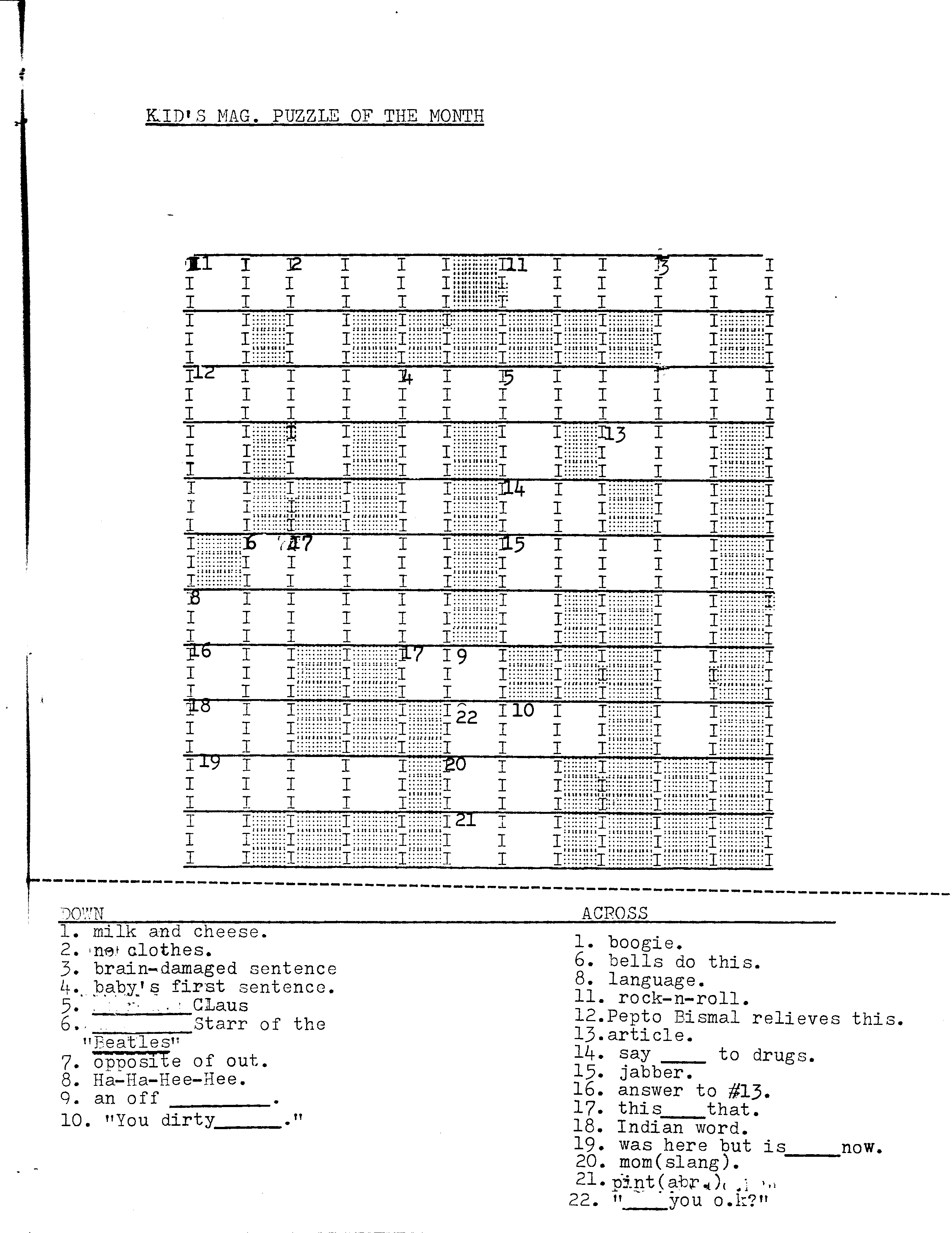 Keep in mind, this was all done on typewriter (pre-computer with no spell check) – even the crossword puzzle Shane made. This was also before I knew about all those pesky copyright laws.