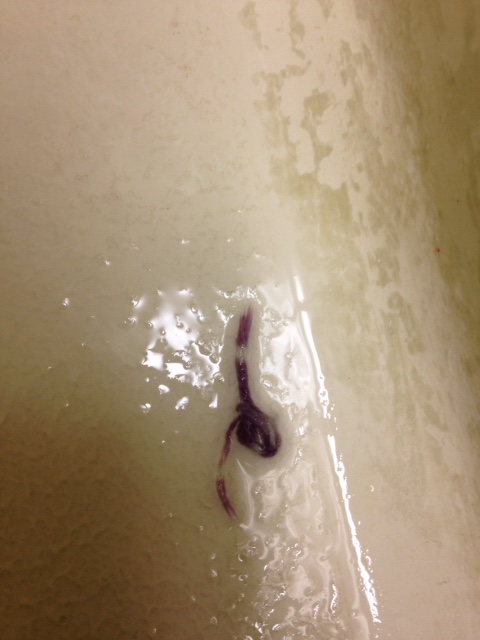 A couple mornings after my hamper arachnid sighting, I jumped in the shower and looked down. And this is what I saw.